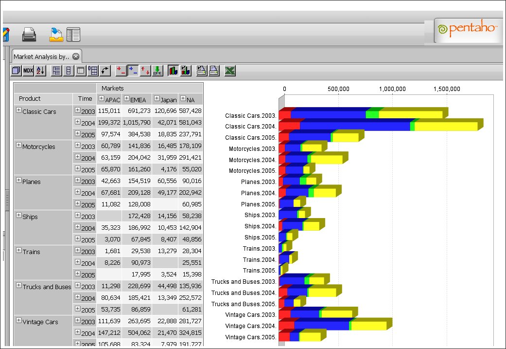 - Didukung oleh beberapa aplikasi interface baik web based maupun desktop seperti JPivot, Pentaho Reporting, Pentaho Analysis Tools, dan Pentaho Analyzer.