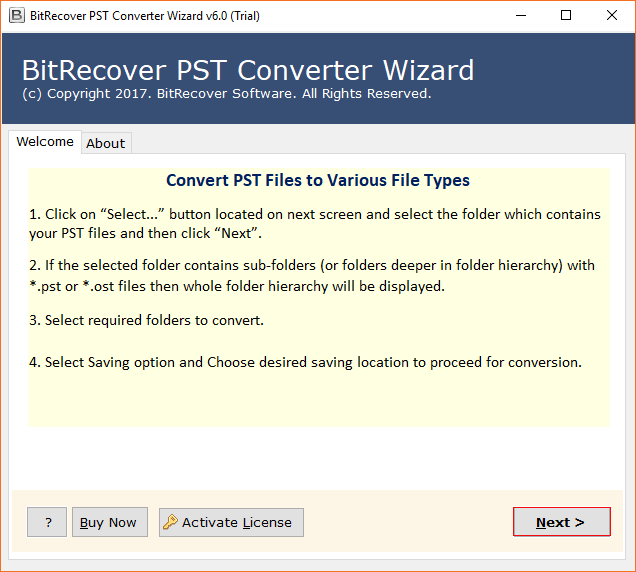 Start PST to Zimbra Wizard, it will automatically load Outlook PST emails from default location and also offers facility to load emails manually by selecting Open option.
