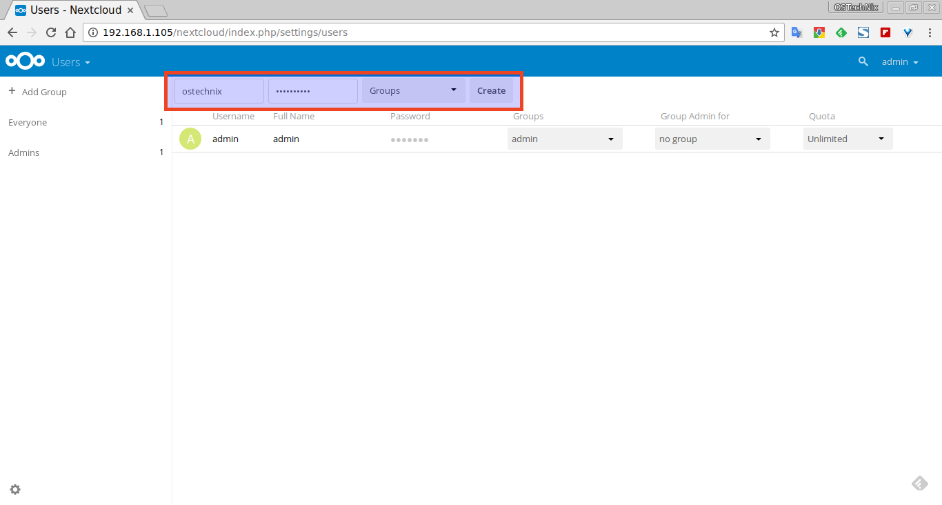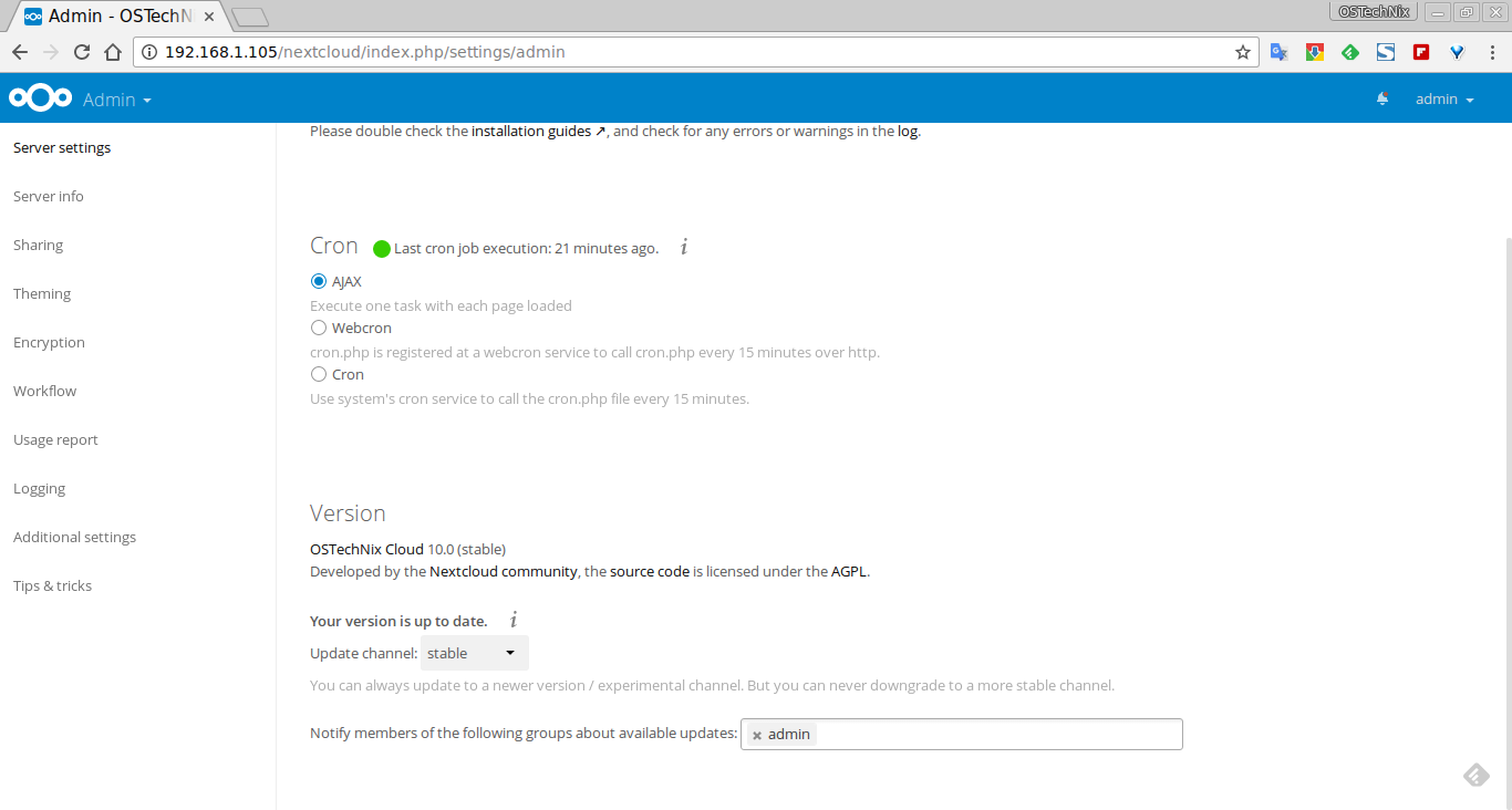 Here, 192.168.1.105 is my Nextcloud server’s IP address.