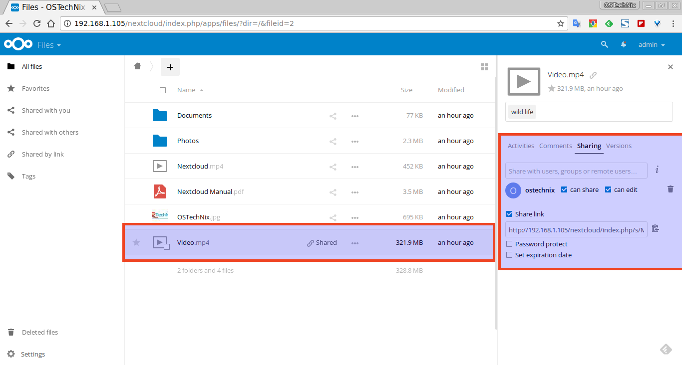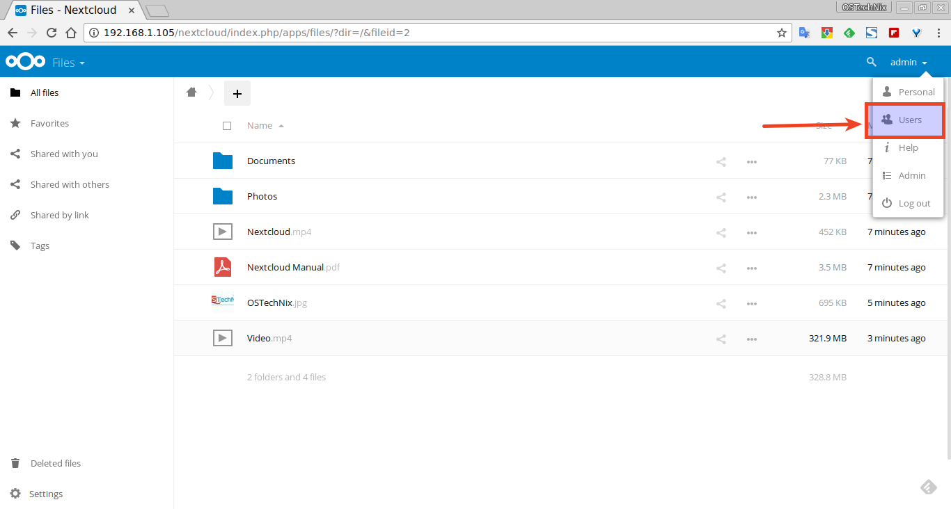 Now, you can able to access the Nextcloud dashboard, and start accessing the shared files.