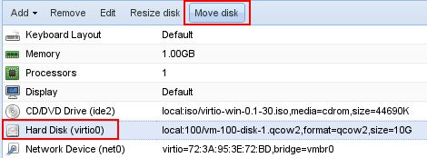 Catatan : Menu Move disk hanya ada pada Proxmox Versi 3.x, apabila menggunakan Proxmox versi sebelumnya, silakan upgrade Proxmox pada versi terbaru untuk menikmati fasilitas ini